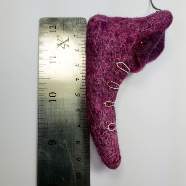 These cute little slippers have been lovingly wet felted using Merino and Silk fibres and hand embellished with stitch and beads. They make a unique hanging decoration for a child's room but are equally appreciated by young at heart adults! When it comes to Christmas they make a lovely stocking filler and look very pretty hung from the tree. Please note these are not a toy. Price includes UK postage.